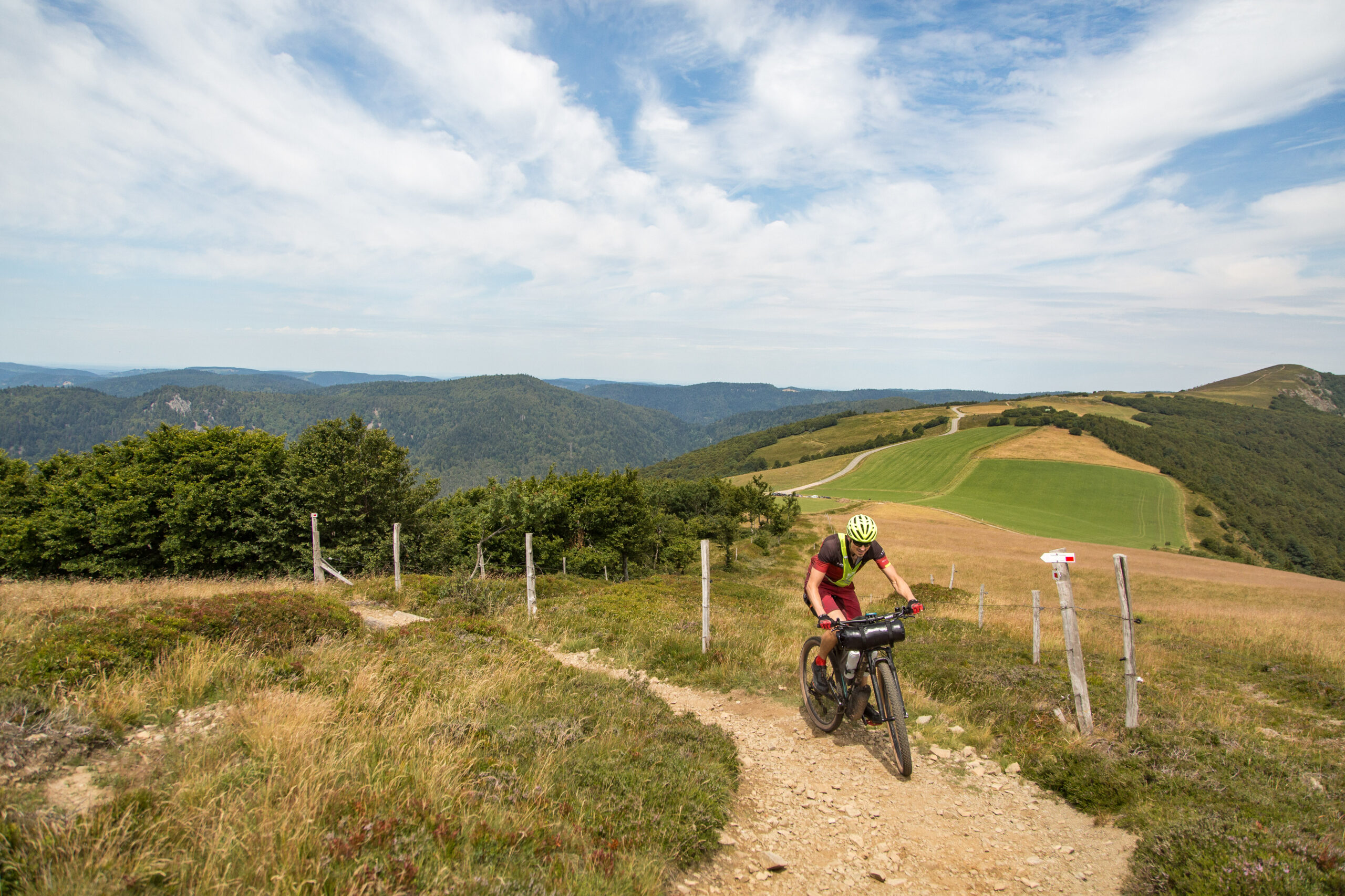 A vous les panoramas vertigineux, les villages striés de colombages, les lacs d’altitude, les fermes-auberges, les chemins jalonnés de châteaux forts ou de belles ruines. Profitez des descentes des plus grands cols Vosgiens.